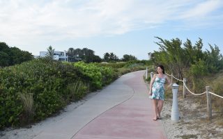 Paikallisbussit S, L ja 120 vievät North Beachiltä South Beachille ja koska Collins kulkee pohjoiseen ja parin korttelin päässä oleva Abbott etelään niin menimme pysäkille Abbott streetille, jossa busseja tuli ilmeisesti usein. Bussimatkan hinta on 2,25 $ ja pitää olla tasaraha. Bussimatka kesti parikymmentä minuuttia pienen ruuhkan kera. Meidän kodikkaaseen alueeseen verrattuna South Beach on vilkkaampaa seutua. Art Deco districtin talot on maalattu pastelliväreillä. Rantakadulla ne oli varustettu ravintoloilla ja baareilla. Jokaisessa kuului oma musiikki ja ihmiset joivat margaritoja isoimmista ikinä näkemistäni margaritalaseista. Olisi vähän tehnyt mieli itsekin sellainen ostaa. Pistäydyimme varsinaisella South Beachillä. Sama ranta ja boardwalk jatkuvat meille asti, mutta täällä ne ovat vain vilkkaammassa käytössä. Aurinkotuolirivit peittivät osan merimaisemasta. Täältä löytyy myös pieniä kojuja, joissa myydään juotavaa ja evästä rantailijoille. Olimme kuitenkin tyytyväisiä, että asumme rauhallisemmalla pohjoisrannalla, siellä kun voi kokea omistavansa sitä pienen suikaleen.