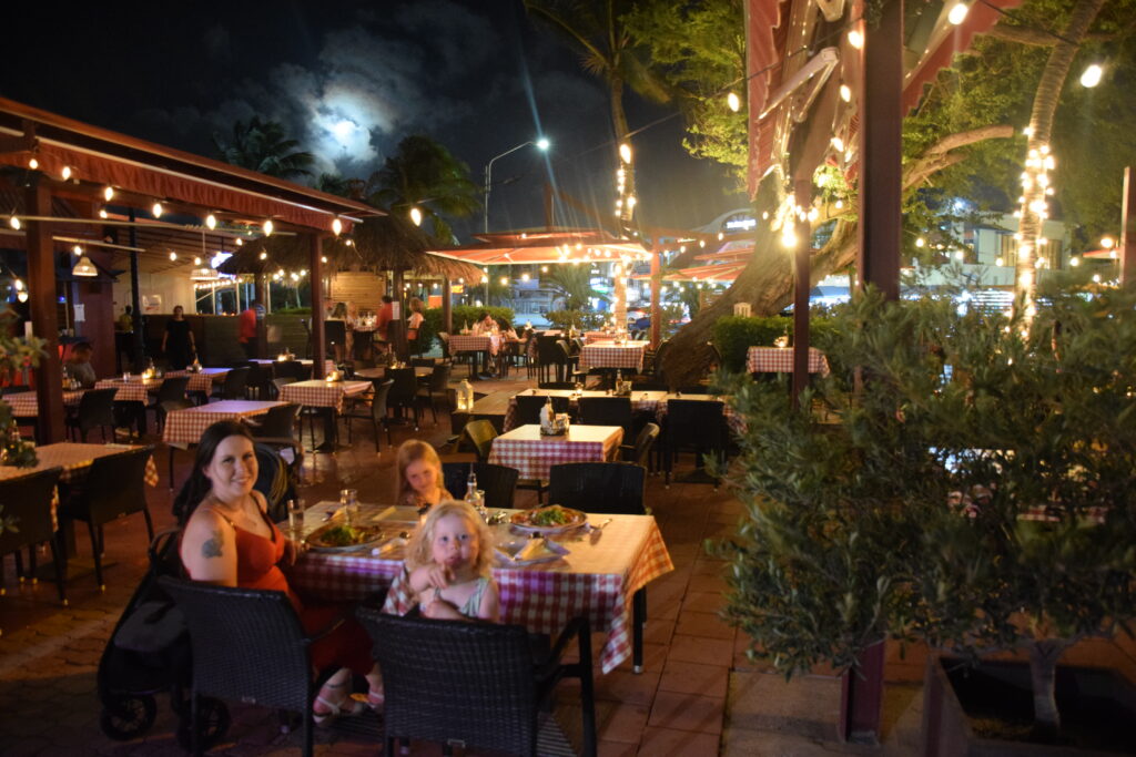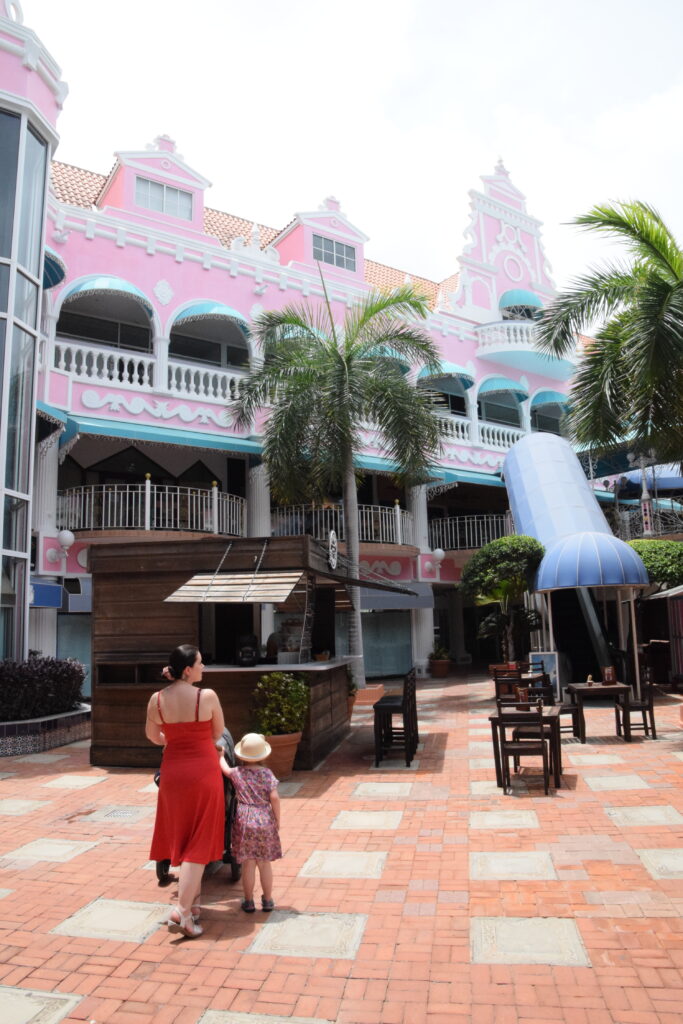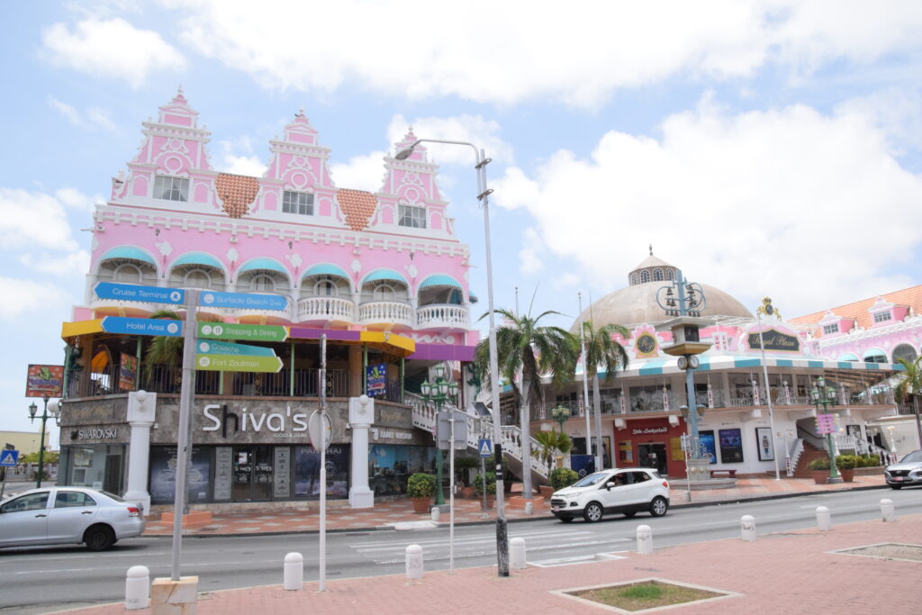 Oranjestad, Aruban pääkaupunki, on saaren ainoa ”kunnon” kaupunki. Siellä on satama, jonne risteilyalukset tulevat. Meidän käyntimme aikana useampi risteilylaiva pysyi satamassa ilman turisteja. Vain pari laivaa kävi tuomassa turisteja päiväksi tuon kolmen viikon aikana. Oranjestadissa meillä oli hankaluuksia löytää ravintolaa. Liekö covid-toimet sitten lopettaneet joitakin ravintoloita. Kerran olimme syömässä indodesialaisessa, Bentang Balissa, ja toisella kerralla löysimme paikallisen lounasravintolan tapaisen. Oranjestad taitaa palvella enemmänkin risteilylaivojen turisteja, jotka yöpyvät ja ruokailevat laivassa. Parhaiten ravintoloita on Palm Beachillä, jossa sijaitsee suuri osa saaren hotelleista. Siellä tarjolla on mm. italialaista, argentiinalaista ja ihan rehellistä kunnon burger-ravintolaa. Sieltä löytyy myös vilkasta iltaelämää. Divi beachillä oleva Beach Bar oli meidän valintamme jopa kolme kertaa. Sen lisäksi Passions -iltaravintola Eagle Beachin hiekalla oli hyvin mieleenpainuva hääpäivän iltana.
