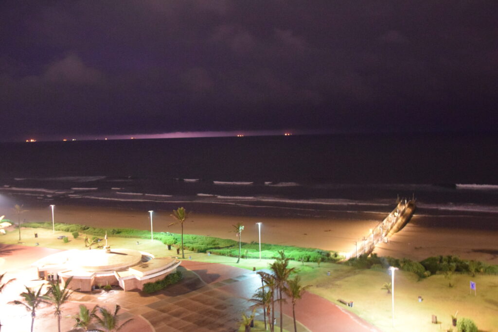 Lentoaika Cape Townista King Shakan lentokentälle oli noin 2 tuntia. Ulkona oli selvästi kuumempi kuin Cape Townissa. Tämä oli pohjoisemmassa ja lämpimän merivirran puolella. Matkaa uber-kyydillä keskustaan oli noin 20 minuuttia. Asetuimme kuuluisalle Golden Mile Beachille Blue Waters -hotelliin. Golden Mile on yksi maan parhaista rannoista ja sijaitsee keskustan tuntumassa. Sen varrelle on rakentunut viihtymisen ja kulttuurin keskus, josta löytyvät mm. kasino, uShaka Marine World (vesieläinpuisto), surffimuseo ja ravintoloita. South beach, North beach, Addington beach ja Bay of plenty muodostavat yhdessä Golden Milen. Pitkä hotellien ja ravintoloiden reunustama ranta sopii niin uimareille kuin surffaajillekin.