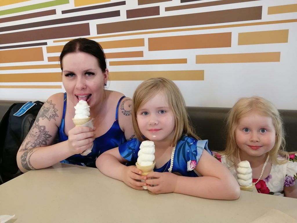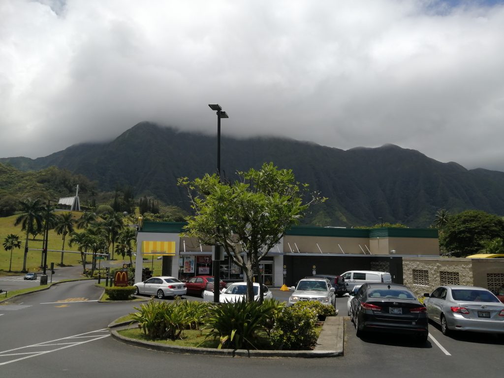 Kohteemme oli Ahuimanun alueella Valley of the Temples. Vastapäätä oli mäkki, jonne pysähdyimme lounastamaan. Tytöt popsivat meidän ranskalaiset valtavalla ruokahalulla ja ottivat loput evääksi.