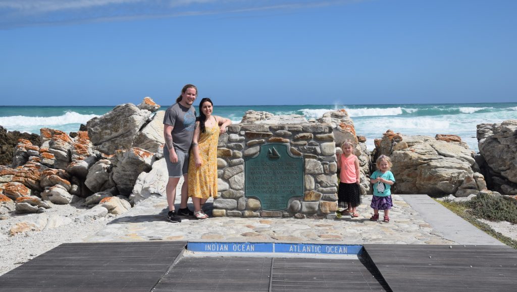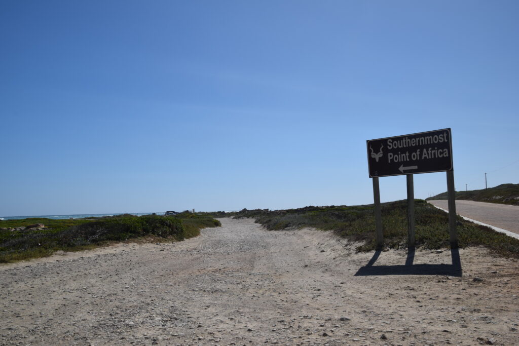 Eteläisin piste löytyi ja olihan sinne autotieltäkin selkeä kyltti, Southernmost point of Africa. Maahan rakennettu Afrikan kartta oli isona monumenttina juhlistamassa paikkaa. Eteläisimmässä pisteessä oli kivinen monumentti, jossa luki ”You are now at the southern-most tip of the continent of Africa”. Cape Agulhasin niemen pituuspiiri on myös sovittu Atlantin ja Intian valtameren rajaksi. Atlantin suunnalta sinne virtaa Eteläisen jäämeren kylmä merivirta ja Intian valtameren suunnalta lämmin Agulhasin virta, jotka kohtaavat toisensa suunnilleen Cape Agulhasin kohdalla.