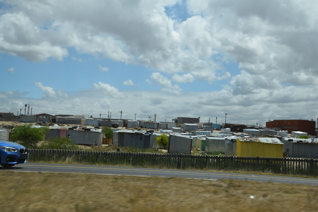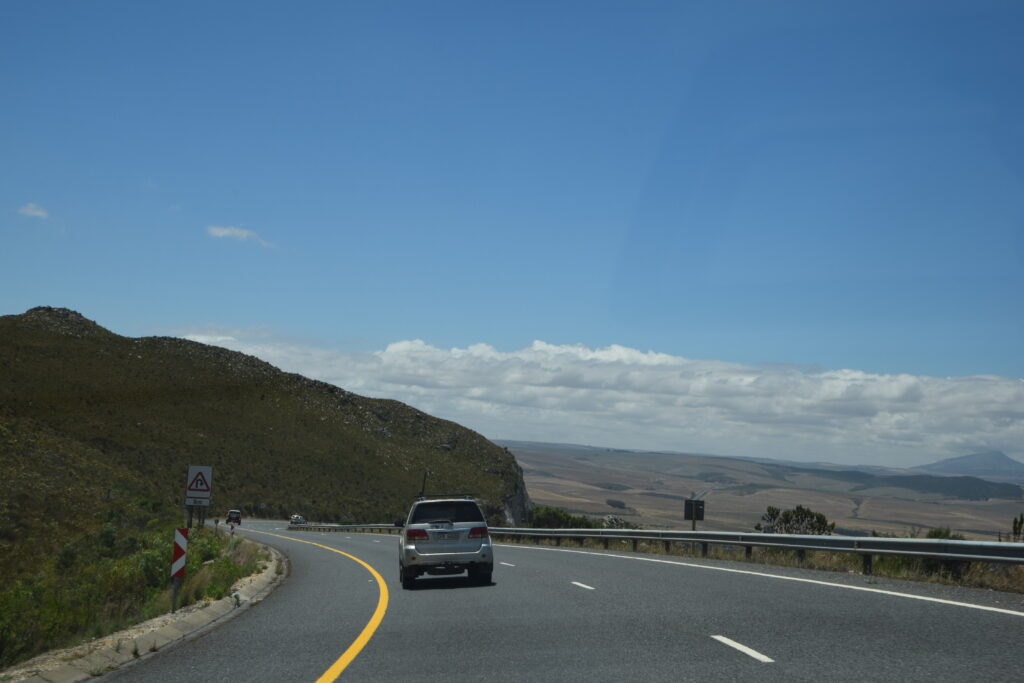 Jouluaaton retki suuntautui yli 200 kilometrin päähän. Lähdimme aamupäivän aikana, suuntamme oli Cape Townista kaakkoon. Tänään reittimme kulki sisämaassa. Pian moottoritien molemmin puolin lähellä lentokenttää oli köyhän näköistä asumusta. Ajoimme myös valtavien peltihökkelikylien ohi. Sähköjohdot kulkivat aivan ”talojen” yläpuolella ja muuntajat lojuivat maassa. Todella kurjan näköistä asumista. Matka jatkui Somersetin kaupunkiin lahden (False bay) poukamassa. Siitä tie lähti nousemaan. Ylitimme vuoret maisemallista vuoristotietä pitkin.