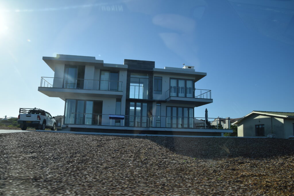 Struisbaain rantakaupungissa näimme taas ”pitkästä aikaa” merta. Olimme hyvin lähellä eteläisintä kohtaa. Täällä näkyi olevan vähän varakkaampaa asumusta. Navimme oli sitä mieltä, että olemme perillä. Korjasimme vähän määränpäätä ja sen piti olla L’Agulhas (eikä Cape Agulhas National Park), jotta navi neuvoi meidät perille asti. Omakotitalot ja huvilat sen kuin komistuivat. Heillä oli maisemat loputtomasti jatkuvaan mereen.