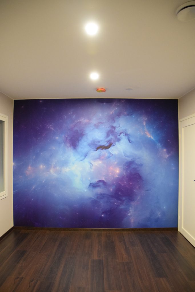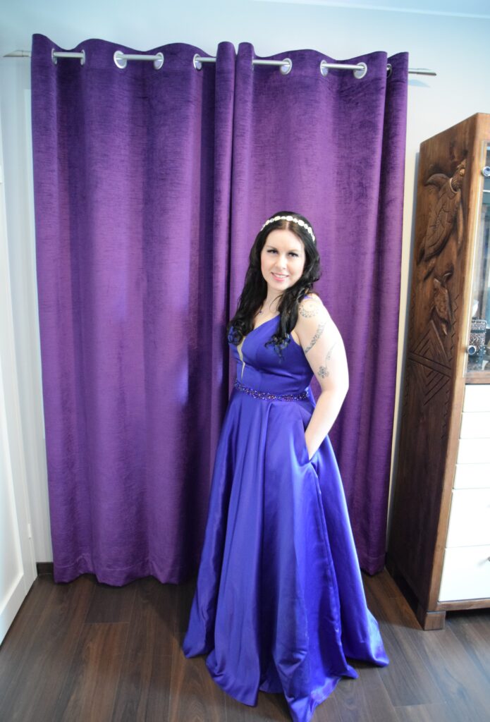Yksi tuparilahjamme oli Eurokankaassa teetetyt verhot master bedroomiin. Kangas saapui Keski-Euroopasta ja verhot ommeltiin Eurokankaassa. Ihan perusverhojen ompelu sujuu minulta, mutta halusin priimaa ja verhot renkailla tankoon kiinni. Verhojen ja vastapäisen seinän tapetin myötä makuuhuoneemme sai kauniin violetin sävyn.