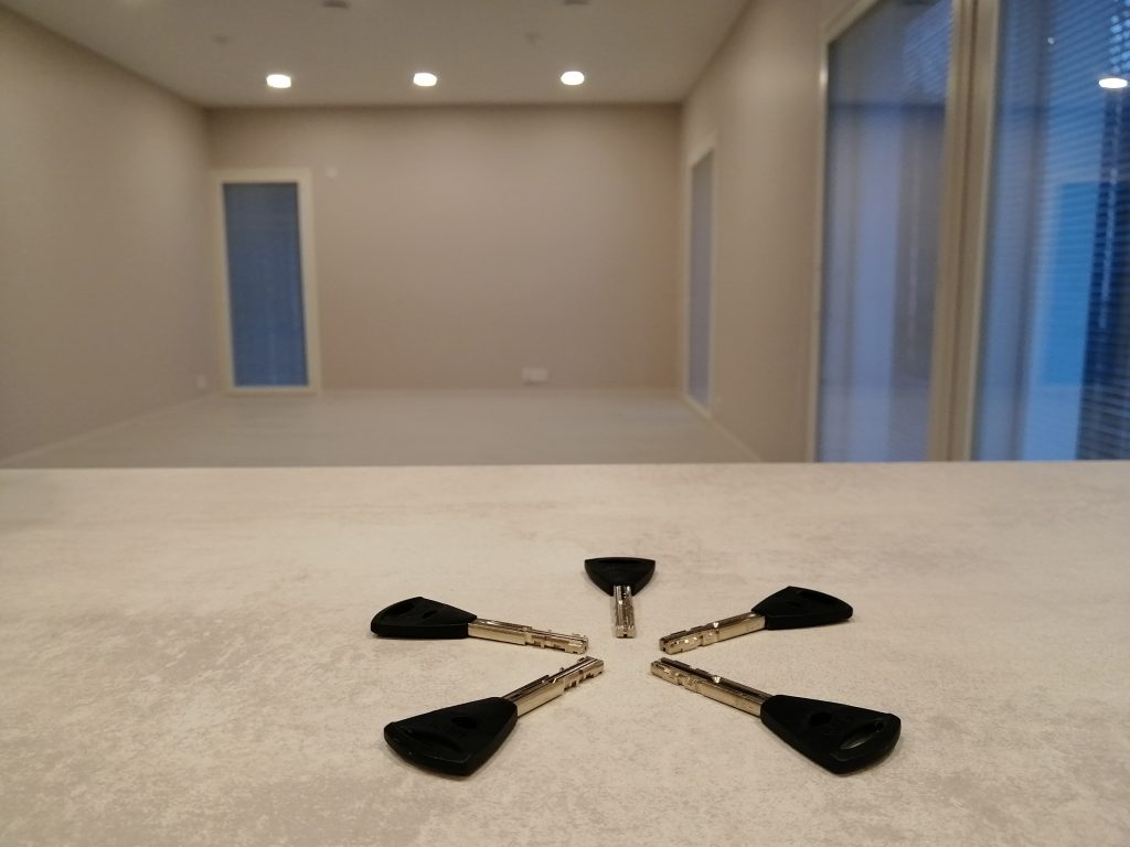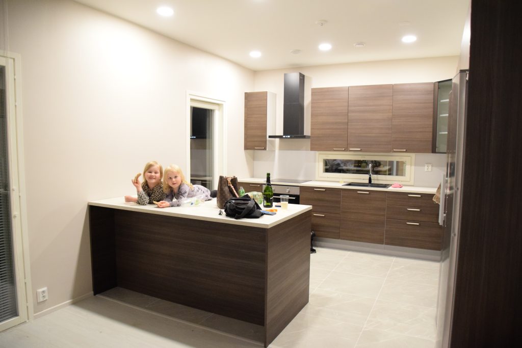 Talomme valmistui marraskuun alussa, täysin aikataulussa. Saimme avaimet käteen 11.11. Se oli taianomainen hetki. Talo, jota olivat monenlaiset tiimit (perustuksista kalusteiden asentajiin) valmistaneet, luovutettiin nyt meille. Talo, joka oli ollut meille puolen vuoden ajan mielenkiintoinen nähtävyys, olikin meidän koti, jonne saisimme vihdoin tuoda oman elämämme.