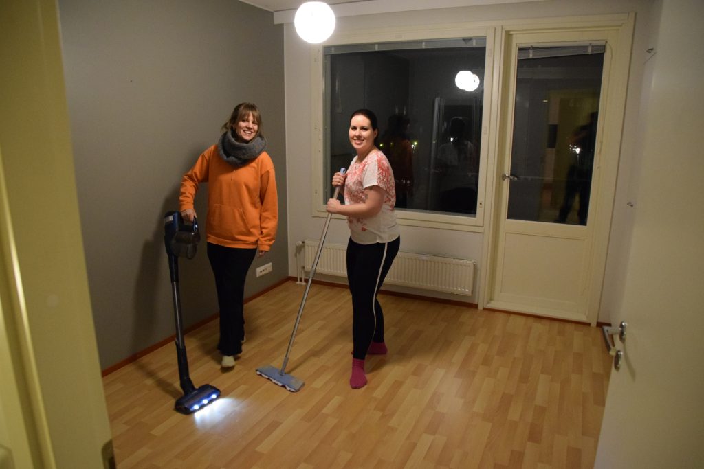Loputkin tavarat oli muutettu kahdeksaan mennessä, jolloin menimme pienellä porukalla siivoamaan vanhaa kotia ja Antti palautti pakun. Olimme jättäneet aika monta kattolamppua seuraaville asukkaille, joten näimme hyvin siivota, vaikka olikin vuoden pimein aika.