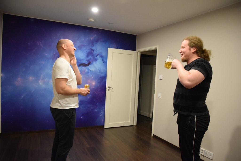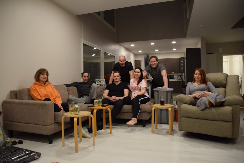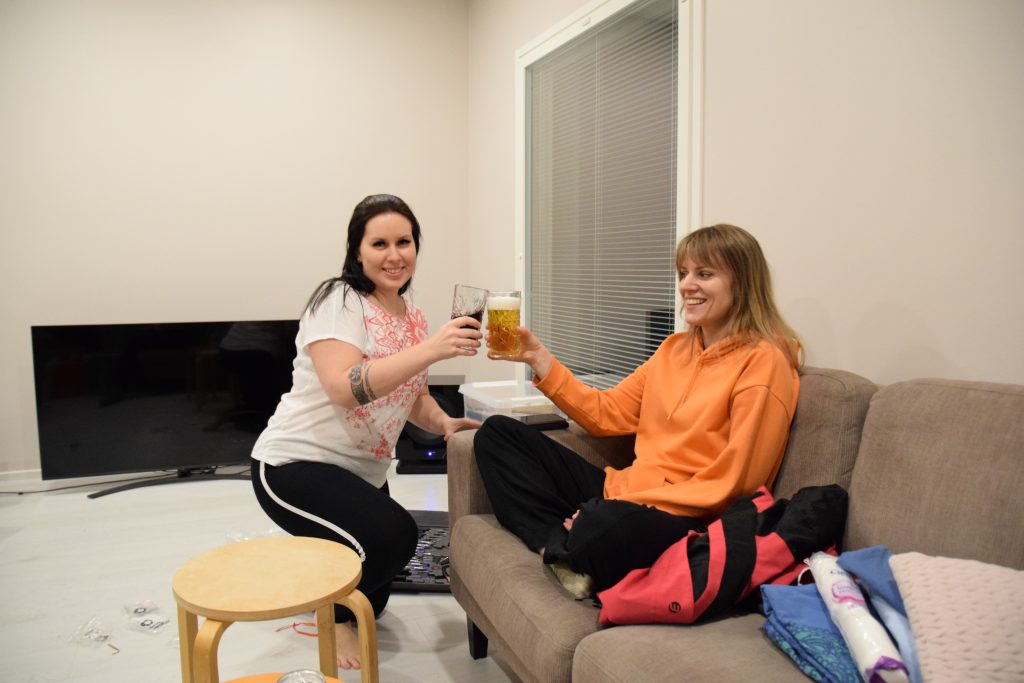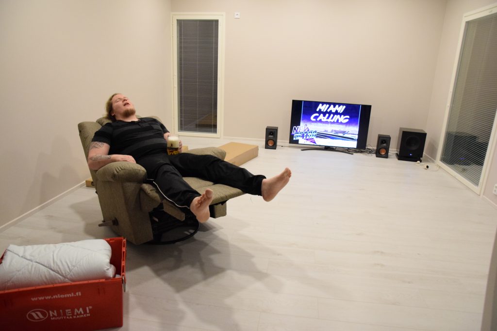 Siivouksien jälkeen oli muuttojatkojen aika; juomaa, uuden saunan testaamista ja musiikkia uusista kaiuttimista ilman huolta, että naapurit häiriintyvät. Mahtava päivä oli takana, timanttisen muuttotiimin kanssa.