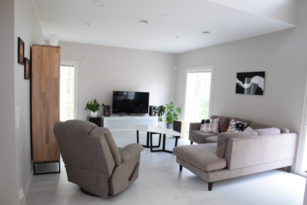 Olemme asuneet uudessa kodissamme nyt puoli vuotta. Uusi kotimme on ainakin tähän asti täyttänyt kaikki odotuksemme. Koko prosessi tontin saamisesta muuttovalmiiseen kotiin kesti lähes tasan 2 vuotta. Mukaan kuului valtavasti uutta opittavaa. Aluksi vaikeinta oli parhaan pohjan piirtäminen, kun mikään valmis pohja ei sellaisenaan sopinut. Alun rasittavien ”paperihommien” ja sopimusasioiden jälkeen saimme keskittyä melkein kokonaan sisustusasioihin ja sisustuksen valintaan. Kun talo alkoi nousta, meidän ei tarvinnut kuin käydä katselemassa joka kerta edistynyttä kotia, niin usein kuin halusimme.
