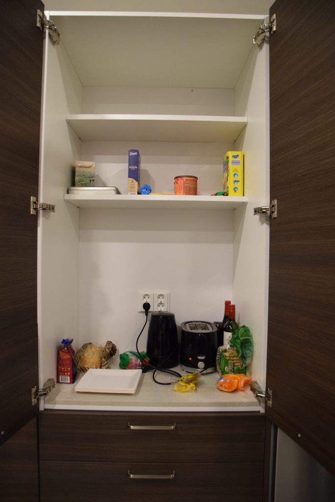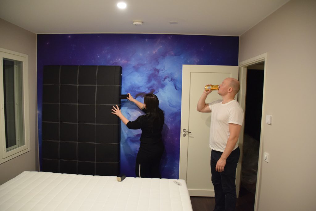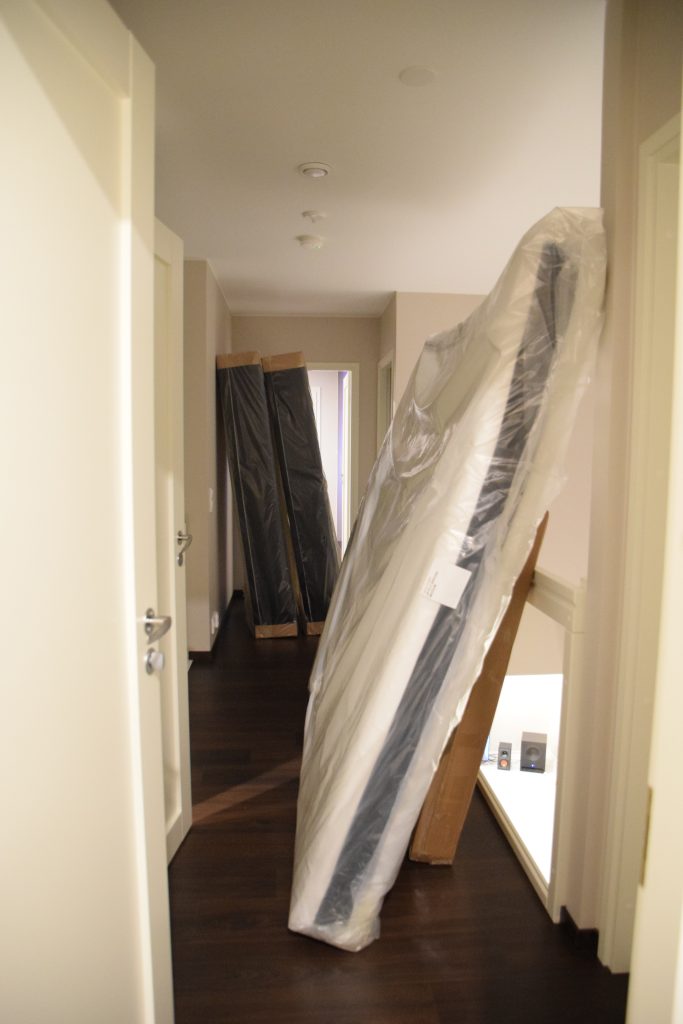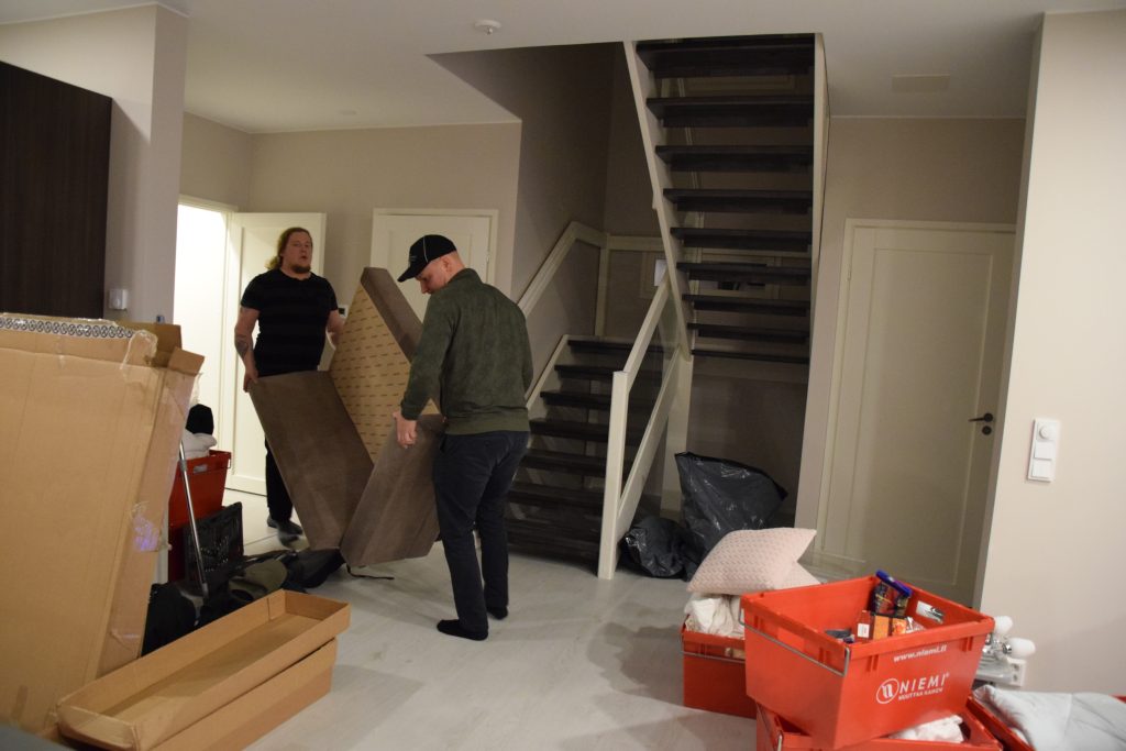 Seuraavana päivänä saimme vuokrapakun käyttöön, niin saimme tuotua mm. sohvan ja ruokailuryhmän. Tarviketta oli sen verran, että pystyimme nauttimaan jo muuttoetkoista ensimmäisenä saapuneen muuttotiimiläisen kanssa. Tuona iltana meille saapui myös kauan odotettu uusi sänky. Ensimmäinen yö uudessa kodissa ja uudessa 2-metrisessä sängyssä oli kuin hienossa hotellissa olisimme nukkuneet.