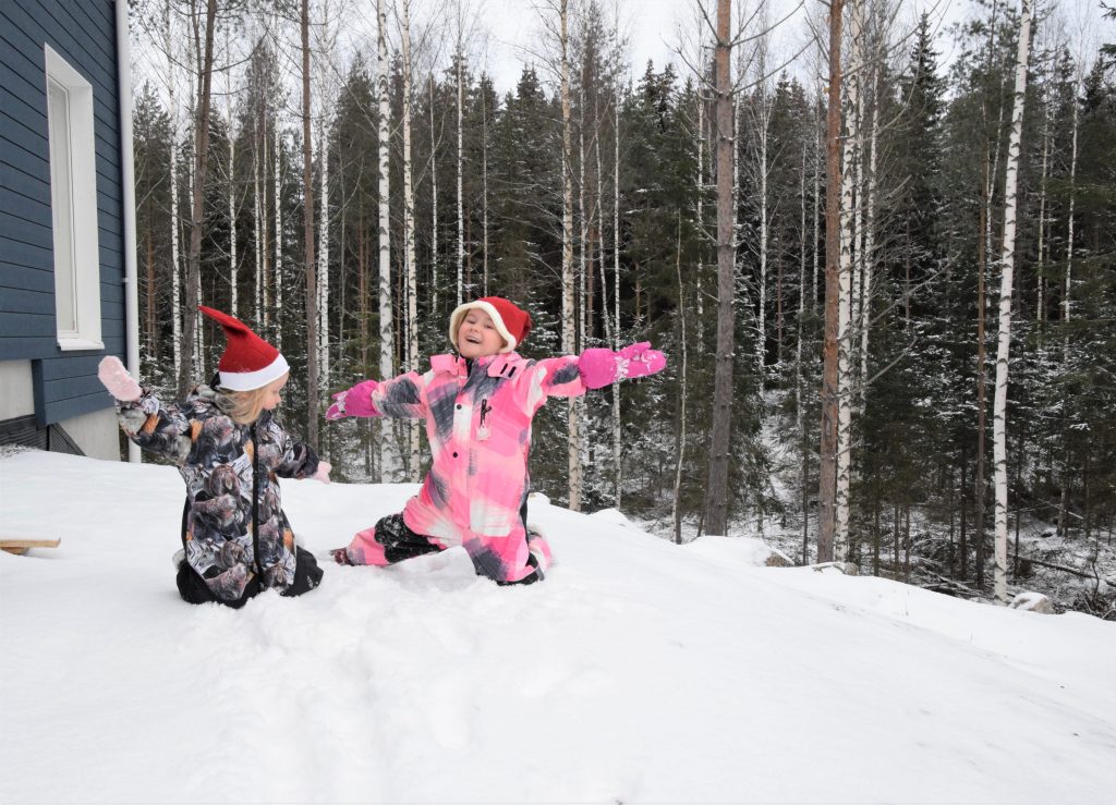 Heti muuton jälkeen tuli talvi ja täysin laittamattoman pihan sai unohtaa paksun lumipeitteen alle moneksi kuukaudeksi. Muuton jälkeisiä tavaroiden järjestelyjä riitti vielä moneksi viikoksi, mutta hyvissä ajoin ennen joulua kaikki olivat paikkansa löytäneet.