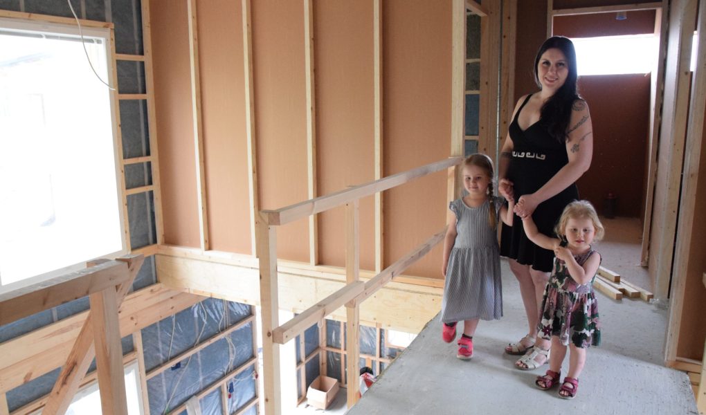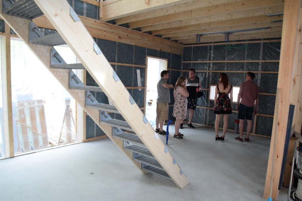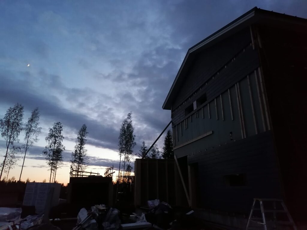Pian pääsimme uuteen kotiimme sisälle ensimmäistä kertaa. Lattia oli vielä kivimursketta, seinissä komeilivat eristykset, maasta sojotti vesiputkia, yläkertaa oli alettu jo rakentaa. Se oli upea fiilis. Ikkunat olivat kohdillaan, isoina seinässä olevina aukkoina. Tulevan olohuoneen isoista ikkunoista paistoi aurinko ja viereisen metsän puiden vihreys sisään. Oli ihmeellistä käppäillä tulevassa kodissa. Katsella, että tähän tulee keittiö, ruokailutila ja olohuone, tuonne tulee minun huoneeni… Meidän itse piirtämämme pohjaratkaisu alkoi toteutua.
