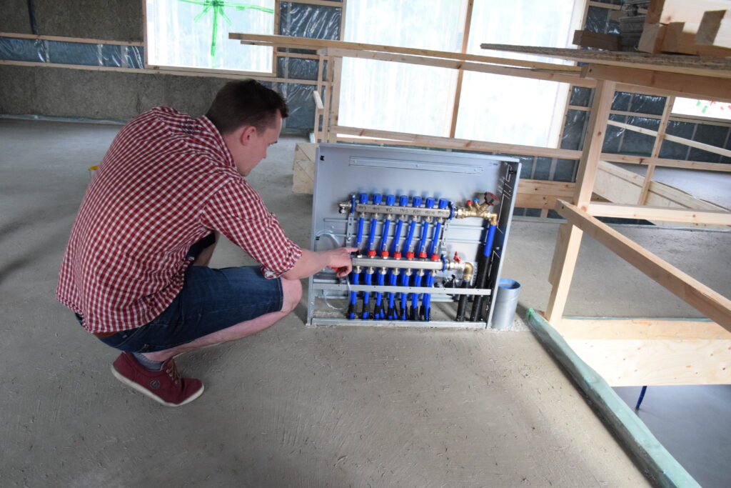Viikon päästä vesikiertoisen lattialämmityksen putket oli asennettu koko alakertaan. Touko-kesäkuun vaihteessa lattiavalut oli tehty. 5.6. pääsimme ensimmäistä kertaa kiipeämään meidän yläkertaan tikapuita pitkin. Siellä pääsimme katselemaan minkälaiset maisemat ovat meidän tulevasta master bedroomista, lasten huoneesta ja ”spa-osastosta”.