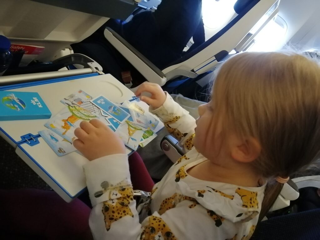 Portilla saimme jonottaa turhankin kauan. Minä istuin koneessa lasten kanssa ja Antilla oli paikka meidän edessä. Reilun parin tunnin lento Amsterdamiin tuntui ainakin neljältä tunnilta, kun väsyneet lapset piristyivätkin temmeltämään. Onneksi nousu meni hienosti ja Aava ensikertalaisena omalla istuimellaan suostui hyvin turvavöihin. Sen jälkeen vyöt eivät olleetkaan niin kiva juttu hänen mielestään. Mila oli ikkunalla ja seurasi kiinnostuneena nousua. Antti sai onneksi hiukan nukuttua lennolla. Minä torkahtelin sekunneiksi. Voi kunpa lapsetkin olisivat vain nukkuneet. Laskeutuminen oli helpotus. Tosin Aava ei suostunut enää vöihin ja oli hiljaa vain, kun pääsi tissille. Kävely Schipholin terminaalista toiseen sai minut piristymään. Meillä oli vain reilu tunti vaihtoaikaa, saimme painella suoraan seuraavalle portille. Tällä kertaa ei siis baby loungeen lepäämään, niin kuin yleensä täällä.