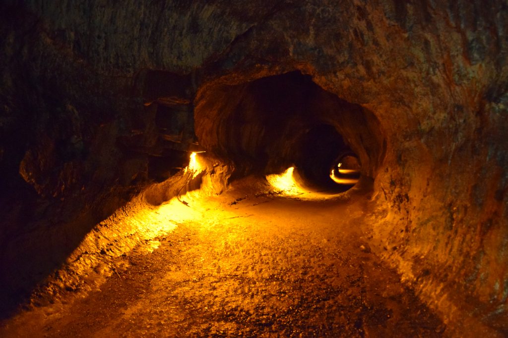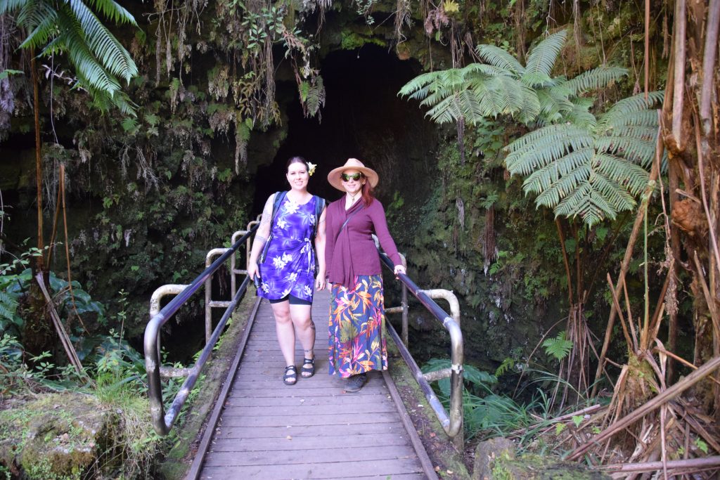 Ajoimme Iki Trail Lookoutin parkkiin ja lähdimme tutkimaan Nahuku (Thurston) laavatunnelia. 1,5 mailin pituisessa tuubissa oli 550 vuotta sitten kulkenut sula laava. Lava tube oli sademetsän sisällä ja sinne laskeuduttiin pari metriä maan pinnan tasosta. Tuubi oli valaistu oransseilla valoilla, jotta näki kulkea. Tämä tuubi oli ollut pitkään suljettuna vuoden 2018 purkauksesta johtuvien rakennevaurioiden vuoksi. Muutama päivä sitten se oli avattu jälleen, mutta vain pieneltä, joidenkin kymmenien metrien, matkalta. Nahukussa sai kuitenkin hyvää esimakua laavatunneleista.